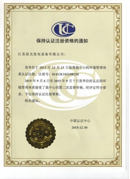 保持认证注册资格的通知(环境认证)