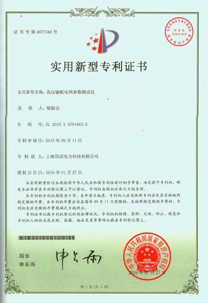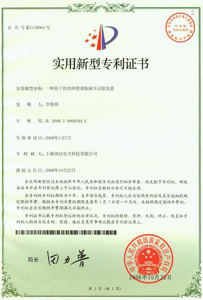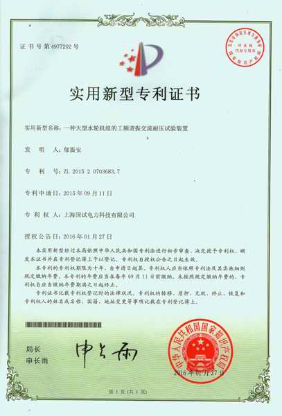 上海国试作为高技术企业,依托上海各科研院校的优势,不断研发新产品,荣获多项自主知识产权的专利技术,先后获得低干扰变频电源、用于监测电力系统谐波电流的电场探头、无局放的谐振耐压试验装置、抗干扰的调频谐振耐压试验系统抗干扰的高压输配电网参数测试仪、基于IPM模块变频高压互感器测试仪等十几项发明专利和实用新型专利。在高压试验行业享有较高的声誉。