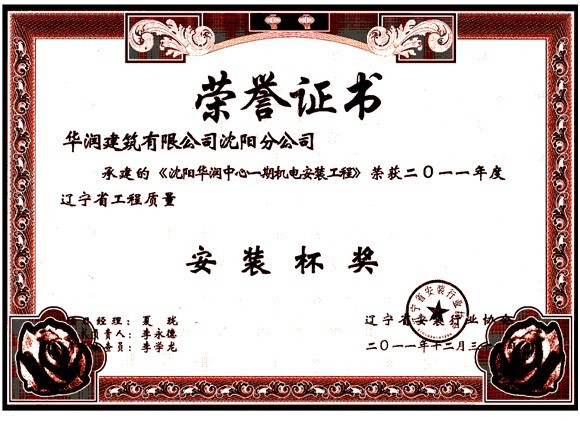 2012年度四川省优秀安装质量奖(蜀安杯)