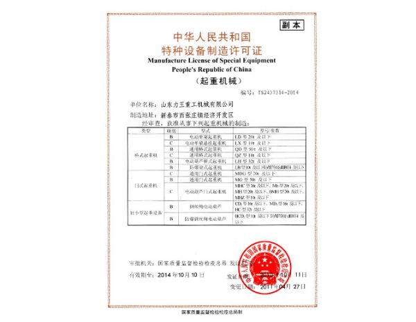 山东力王重工机械有限公司,位于五岳之首的泰山脚下――新泰市西张庄工业园区。公司于2009年3月10日,通过兼并控股重组的形式,经山东省工商行政管理局注册成立,实现了多种产品并存,多元化发展,抵御风险较强的集团公司。 公司现占地面积42000平方米,其中生产车间10000平方米,室外大型门吊作业现场20000平方米,拥有固定资本资产5000余万元,年产值过亿元,利税近千万元,现有职工人数377人,其中专业技术人才97人,拥有一支能独立进行产品的开发设计队伍。公司还拥有强大专业铆焊、机械加工、抛丸除锈、开矫平机等重大关键设备及检测设备160多台套,并拥有大型的数控下料线、自动埋弧焊生产线。CO2气体自动焊接线等多条生产线,使得公司制造的产品质量,得到了强有力的保证。 集团公司以起重机械制造为主业,集天时地利人和于一体,凭借...... [ 查看详情 ]
