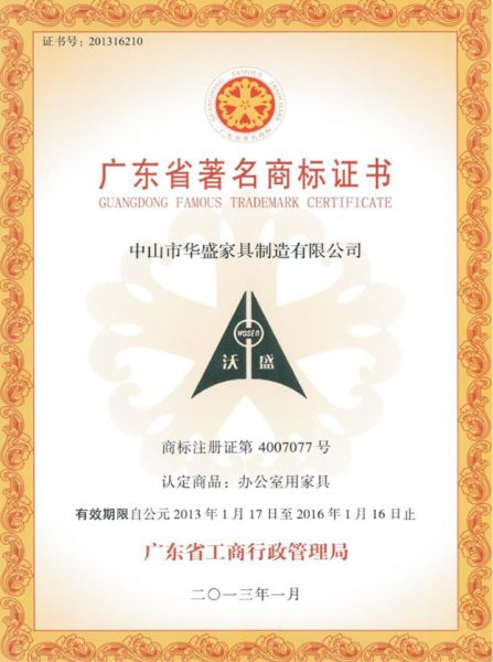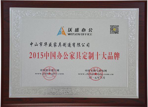 华盛家具公司创立于2004年3月,同期创立了“沃盛”(Wosen)品牌,是一家集研发、生产、销售、服务于一体的专业高档办公及酒店别墅家具企业。企业注册资金10080万元,拥有八大生产基地,总占地250,000平方米,配备专业化的产品研发中心、国际化的产品检测中心以及近2000余名高素质的产业人员。企业荣获“中国家具协会第六届理事会常务理事单位”、“广东省家具商会第六届理事会执行会长单位”、“中山市家具商会常务副会长单位”、“2014广东省制造业企业500强”;沃盛品牌荣获“广东省著名商标”、“广东省名牌产品”、“2014-2015中国办公家具十大品牌”、“2015中国办公家具十大顶级品牌”等称号,2016年荣获“企业信用评价AAA级信用企业”荣誉。