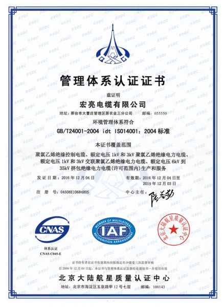 管理体系认证证书