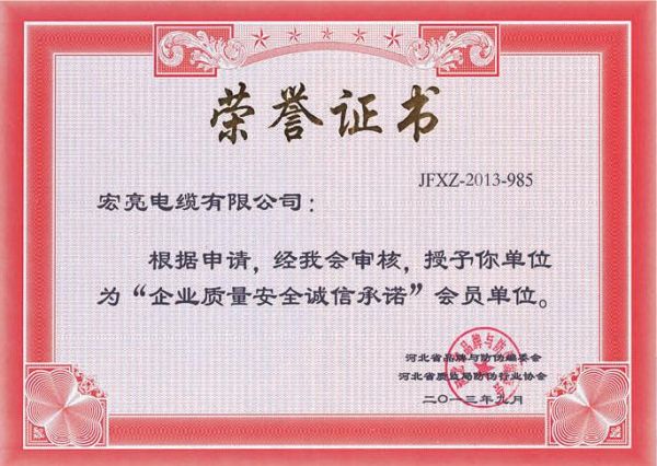 河北省诚信企业证书
