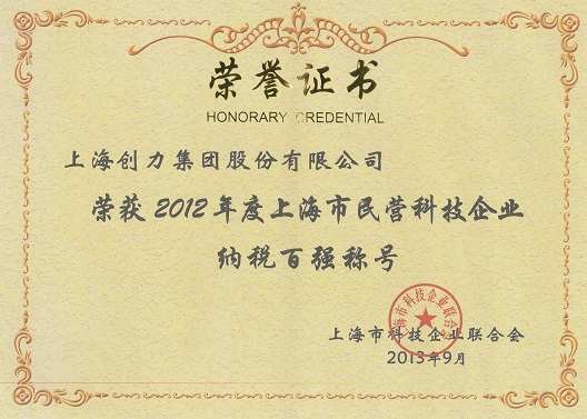 资质名称: 2012年度上海市民营科技企业纳税百强称号 |