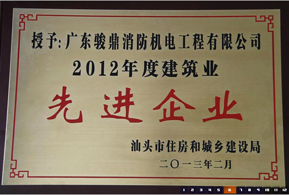 产品名称: 2012年度汕头市建筑业先进企业 |