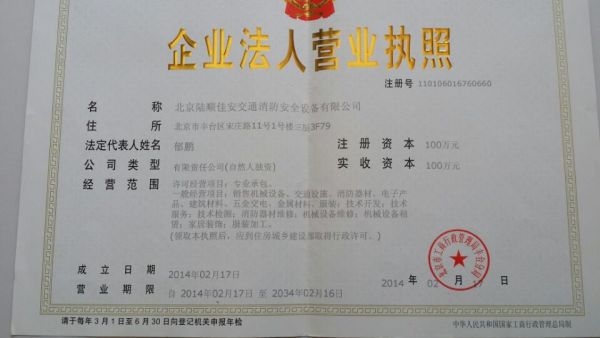 北京陆顺佳安交通消防安全设备有限公司是北京市公安消防局备案企业,中国消防协会会员单位,公司位于北京市丰台区南四环中路16号榴乡桥西南。 经营范围:交通消防器材、交通设施、消防工程、消防检测、灭火器年检、消防设施维修维护等。公司秉承“顾客至上,锐意进取”的经营理念,坚持“客户第一”的原则,为广大客户提供优质的服务!    主要经营内容:   1.专业批发销售各种灭火器及灭火器箱、消火栓箱及栓、枪扣、水带、自动喷淋系统、智能火灾报警及联动控制系统、防火枕、防火涂料、消防工具及灭火毯、消防服、消防应急灯、救生设备、标牌、路锥、太阳能回转灯、公路护栏、减速带、挡车柱、车位锁、大水马、施工牌、反光镜等。 2.专业维修检测灭火器及火灾探测器清洗。 3.公司拥有经验丰富的工程专业技术人员,拥有大...... [ 查看详情 ]