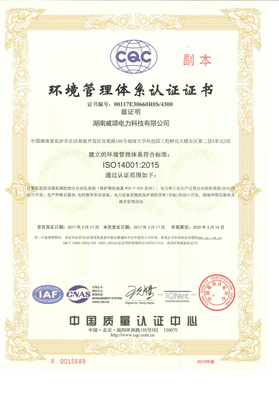 环境质量体系认证证书